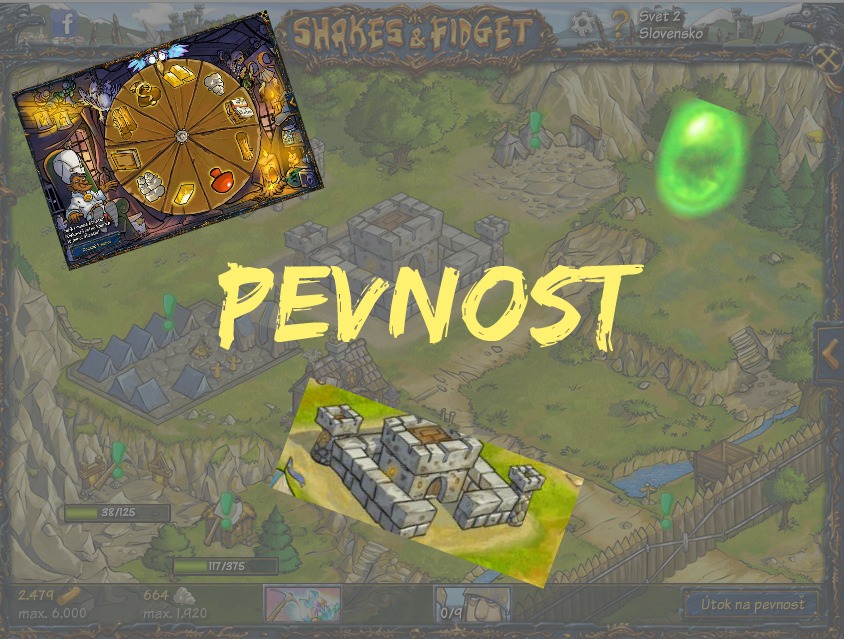 Tu si môžete vytáčať veci, prvé vytočenie je zadarmo druhé už chce hubičku, kto na to má ide točit 10x za tých 9 dalších,vždy zaplatíte hubou alebo 10 mincí, ktoré idú po novom získať z lietajúcich bední. .Možno tu získať skúseností, zlato, drevo, kamene s trochou šťastia budete mať možnosť vyhrať huby alebo epik predmet vo vrecúčsku s otáznikom, je toho dosť.