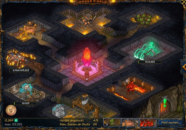Môžete nalákať až 5 nič netušiacích hrdinov do svojho Podsvetia každý deň. Prenechajte tuto špinavú prácu vašej armáde škriatkov, trolov a správcom. Porazte hrdinu a získajte jeho dušu!